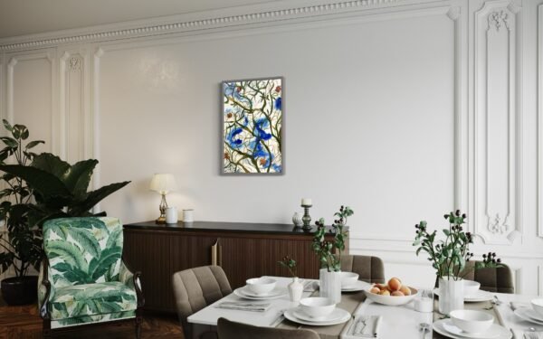 A local tree in Barbados seen all over the island. This tree was providing shade at a cemetery that was celebrating the life of many slave owners and plantation workers. It is interesting to think that despite the stark differences in ones life, when passed you share the same view. Up through the trees looking at the sky. Painted with Watercolour and inks and finished in gold leaf.